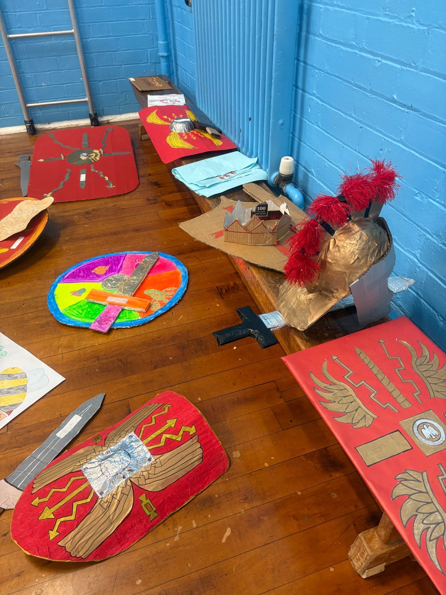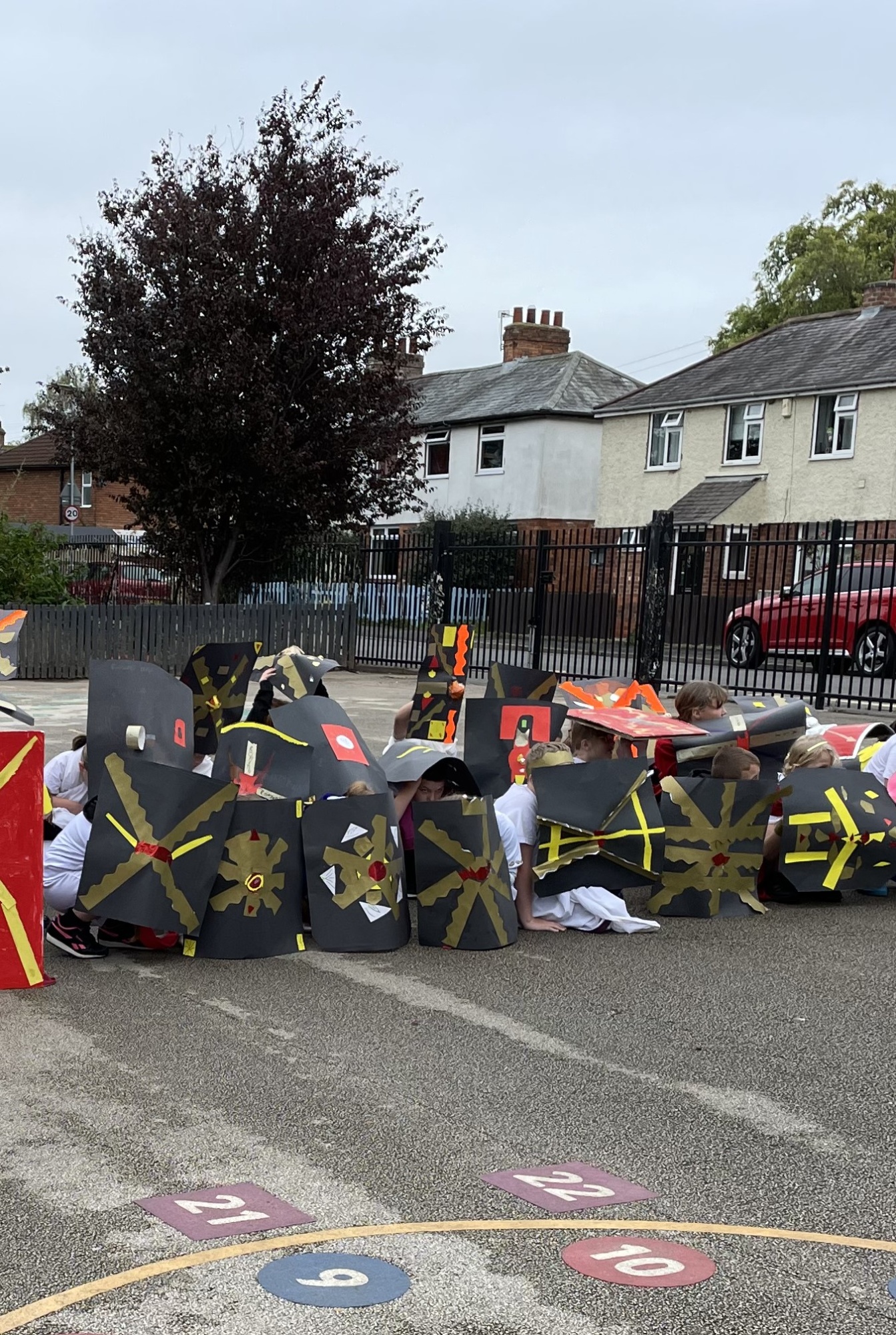 Autumn 1 2025Year 3 and 4 children have been enjoying finding out about why the Romans were successful in invading Britain. They have found out about life in the Roman army and why the army was efficient. They have made shields and learnt how to march and make tortoise formations to defend themselves from the enemy. |